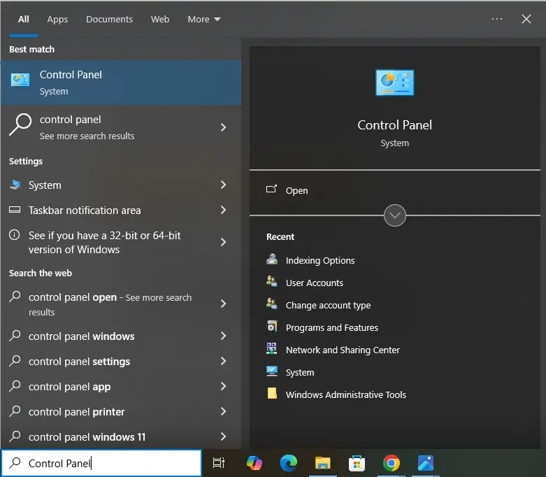 - Browse and click Control Panel to open it