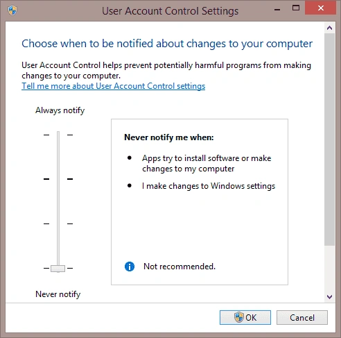 Solution 1: Turn Off the User Account Control Settings