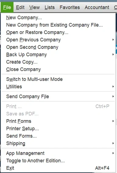 - If asked, QuickBooks asks for a backup, then creates a backup.